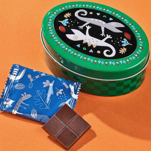- Contents: 70% Dark Cacao Chocolate (individually wrapped Napolitains) 🦎